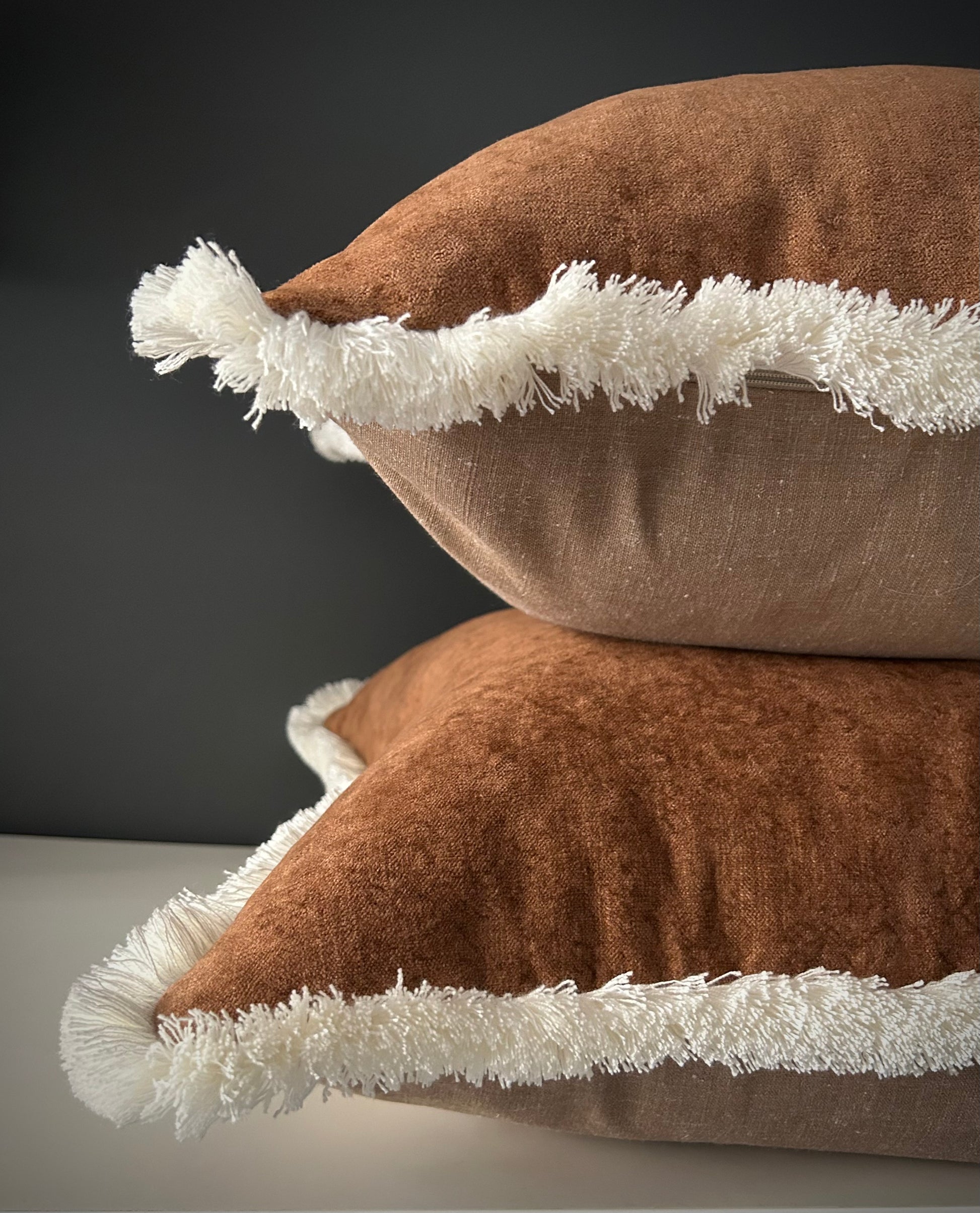 Il lino in tinta unita sul retro, illuminato dallo spazzolino bianco, aggiunge quella carezza di luce che rende tutto più armonioso. ✨